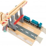 Płyta bazowa z torami i mostem pasuje do większości drewnianych kolejek – łatwe rozszerzenie Twojego świata na torach.