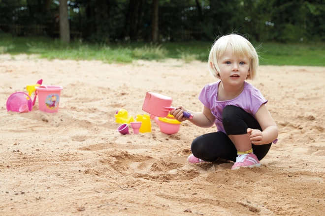 Zabawa z piaskiem rozwija małą motorykę, koordynację ręka–oko oraz wyobraźnię. Świetny wybór do pierwszych budowli i zabaw w grupie.