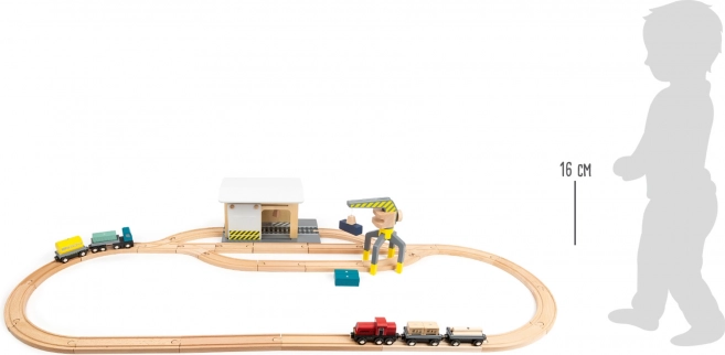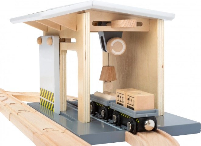 Odkryj kompletny drewniany zestaw do małej kolei, w pełni kompatybilny z popularnymi kolejkami drewnianymi. Dzieci będą się bawić realistycznym załadunkiem przy pomocy dźwigu, przewozem ładunku i grą w magazynie. Zestaw zawiera aż 44 elementy, w tym 25 odcinków torów, obrotowy dźwig 360°, magnetyczne wagony i ładunki oraz przesuwną ścianę z bloczkiem. Wykonany ze 100% drewna FSC dla bezpiecznej i zrównoważonej zabawy.