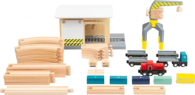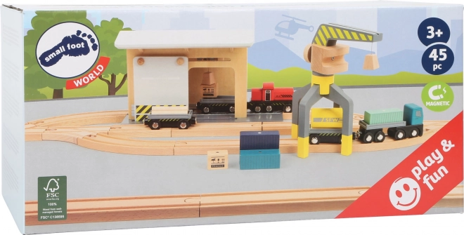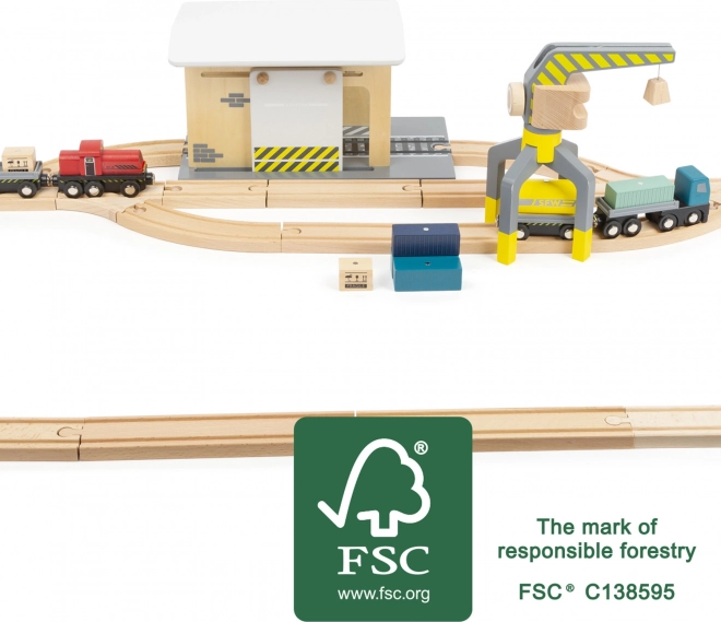 Ten bogato wyposażony drewniany zestaw wprowadza dzieci w autentyczny świat kolei towarowej. Obrotowy dźwig łatwo przenosi magnetyczne klocki i kontenery, przesuwna ściana z wbudowanym bloczkiem umożliwia elastyczną obsługę, a pociąg z magnetycznymi wagonikami rozwozi towary po zróżnicowanej trasie z 25 elementów. Całość wykonana z certyfikowanego drewna FSC dla trwałości i bezpiecznej zabawy.