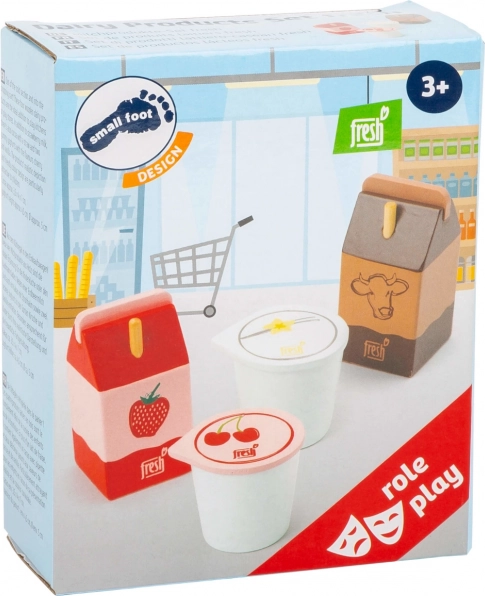 Rozszerz dziecięcą kuchnię lub stoisko sprzedażowe o pięknie wykonany zestaw drewnianych produktów mlecznych SMALL FOOT. Realistyczny design i przyjemne wymiary świetnie leżą w dziecięcej dłoni i zachęcają do kreatywnej zabawy. Solidne drewno zapewnia wytrzymałość i długą żywotność nawet przy codziennym użytkowaniu.
