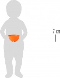 Lite drewno przyjemnie leży w dłoni, a plastikowa miska jest lekka i wytrzymała – idealna dla dzieci od 2 lat.
