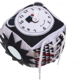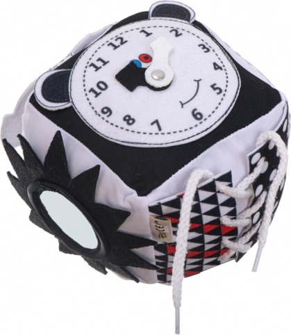 Ta miękka sensoryczna kostka uczyni każdy dzień twojego małego odkrywcy wspaniałym. Kontrastowe wzory i czarno-białe kolory stymulują wzrok, podczas gdy różne tekstury pomagają w rozwoju dotyku. Kostka jest wyposażona w grzechotkę i szeleszczące elementy, które przyciągną słuch nawet najmłodszych.