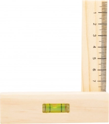 Zawiera kątownik z poziomicą, klucz, śrubokręt, młotek, szczypce oraz wiertarkę z 3 końcówkami.