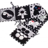 Produkt wspomaga dojrzewanie wzroku oraz dotyku dzięki kontrastowym wzorom i teksturom, które przyciągają uwagę dziecka.