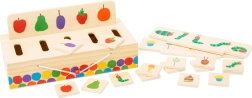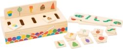 Ta wysokiej jakości drewniana zabawka wspiera naturalny rozwój dzieci poprzez zabawę. Kolorowe drewniane płytki wkłada się do odpowiednich otworów w pokrywce, a dziecko ćwiczy sortowanie według kształtu i koloru, koordynację oko–ręka oraz cierpliwość. Dzięki kompaktowym wymiarom pudełko jest świetnym towarzyszem w domu i w podróży.