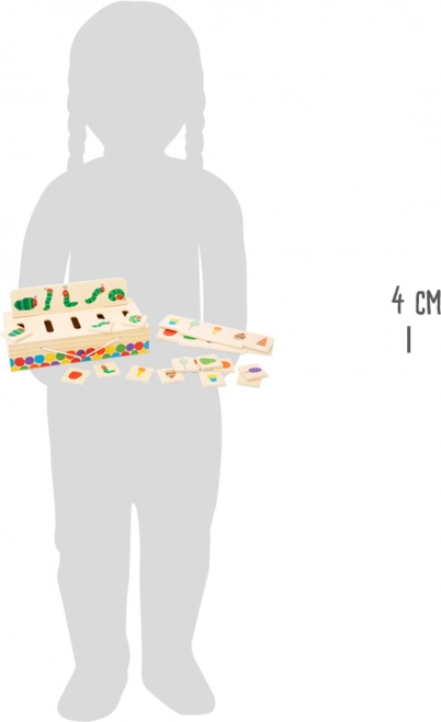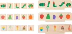 Kolorowe ilustracje z gąsienicą bawią dzieci i motywują do dalszego odkrywania i układania.