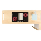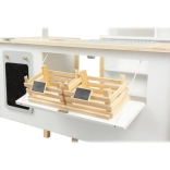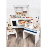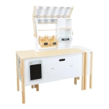 Zawiera wagę, składane półki, tablicę do pisania, ekspres do kawy i przestrzenie do przechowywania z pojemnikami, które wspierają kreatywność dzieci i inspirują do niekończącej się zabawy.