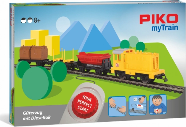 Ten zestaw startowy PIKO myTrain zawiera wszystko, czego potrzebujesz, aby szybko zacząć: lokomotywę spalinową DB, trzy wagony towarowe, podstawowy owal R2 oraz analogowy kontroler z zasilaczem. Dzięki skali H0 (1:87) zestaw jest w pełni kompatybilny z innymi komponentami i torami H0 różnych producentów.