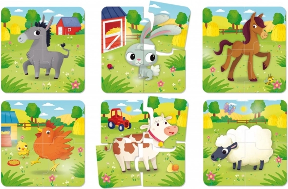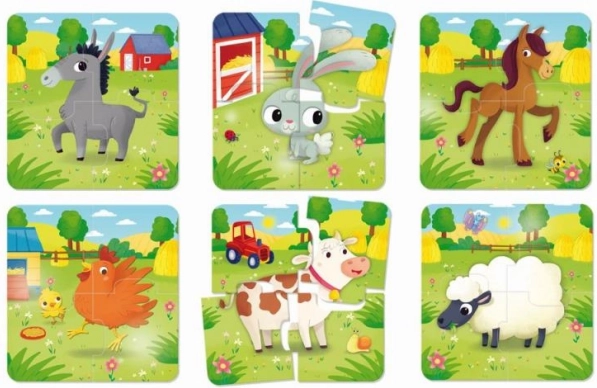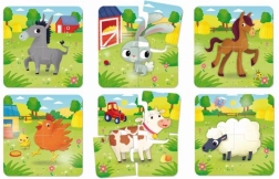- 6 obrazków z farmy złożonych z 24 dużych elementów – idealne na pierwsze układanie.