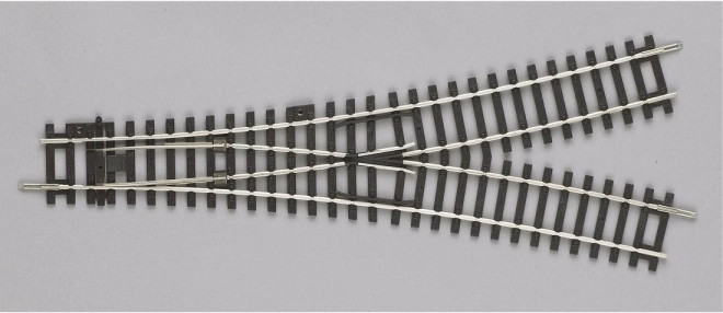 Rozjazd z wiernym odwzorowaniem drewnianych podkładów, w autentycznych kolorach. Łączy parę symetrycznych łuków 15° R9. Może być sterowany ręcznie. Dostępny jest także zdalnie sterowany napęd, dla którego przygotowano tutaj złącze. Główne cechy: symetryczny 15° promień (R9) 908 mm odwzorowanie drewnianych podkładów Dokumentacja: Broszura do torów PIKO H0 A-Gleis (DE, EN)