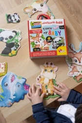Dotykowa gra specjalnie stworzona dla małych dzieci. Chropowata powierzchnia zwierzątek pomaga maluchom zacząć rozpoznawać dotykiem! Połącz mamę z młodym. Gra zawiera 24 elementy. Tego typu gry Montessori pomagają dzieciom uczyć się w zabawny i skuteczny sposób, z wykorzystaniem wszystkich zmysłów. Odpowiednie dla dzieci od 1 roku.