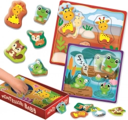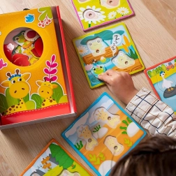 Odkryj edukacyjny zestaw, w którym dzieci dopasowują młode do ich mamy i taty, poznają zwierzęta oraz ich naturalne środowisko, a przy tym trenują cierpliwość, uwagę i motorykę małą. Zestaw zaprojektowany dla najmłodszych – proste konturowe elementy dobrze leżą w małej dłoni i łatwo je wkładać.