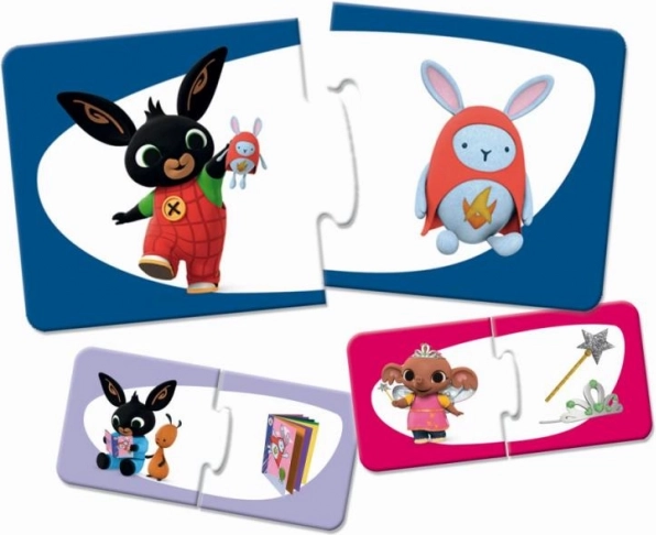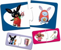 Odkryj pierwsze układanki z króliczkiem BING! Ten zestaw prostych dwuelementowych puzzli z motywami Binga i jego przyjaciół jest idealny dla dzieci, które dopiero zaczynają swoją przygodę z układaniem. Duże i solidne elementy łatwo chwycić i wspierają rozwój motoryki małej, koncentracji oraz radości z sukcesu. Polecane od 1. roku życia.