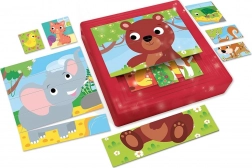 Odkryj zabawne i edukacyjne układanie z progresywnym zestawem puzzli dla najmłodszych. Zestaw oferuje 8 różnych układanek o stopniowo rosnącym poziomie trudności z motywami maluchów zwierząt oraz praktyczne plastikowe pudełko z ramkami ułatwiające łatwe i precyzyjne układanie. Dzięki prostym elementom bez zamków produkt jest idealny dla dzieci w wieku od 1 do 4 lat i świetnie rozwija małą motorykę, wyobraźnię oraz cierpliwość.