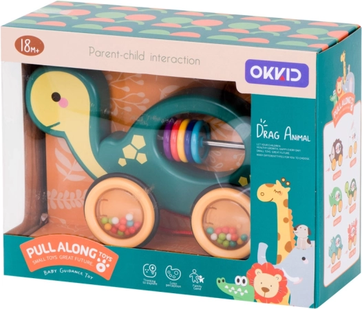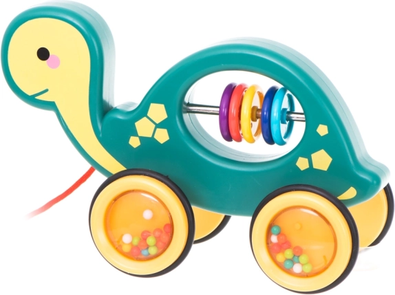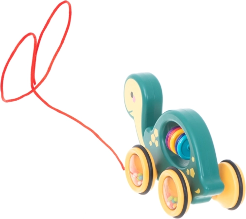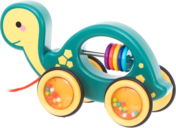 Świetny towarzysz dla Twojego dziecka, który zachwyca nie tylko barwnym designem, ale także interaktywnymi funkcjami. Pociągnij za sznurek i wspólnie wyruszcie na pełne przygód wycieczki! Żółw został zaprojektowany tak, aby stymulować zmysły dziecka dzięki dźwiękom grzechoczących koralików oraz żywym kolorom wspierającym rozpoznawanie barw.