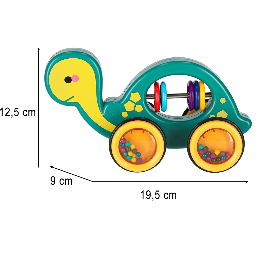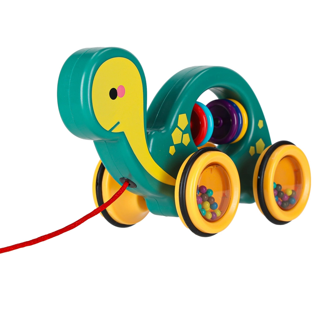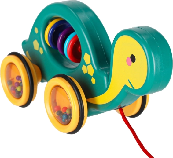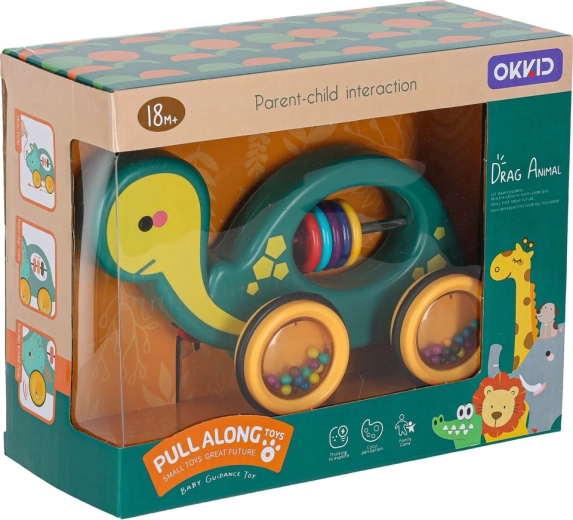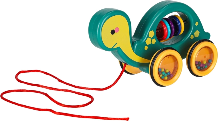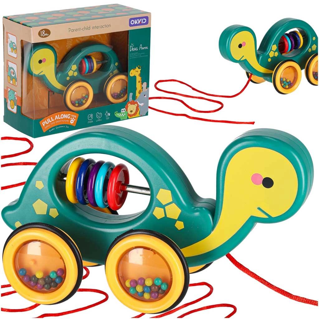 Ten wesoły żółwik do ciągnięcia to idealny towarzysz w domu i na spacerze. Dzięki sznurkowi dziecko łatwo go prowadzi, a przezroczyste kółka z kolorowymi kuleczkami przyjemnie grzechoczą i motywują do ruchu. Zabawka wspiera rozwój motoryki dużej i małej, koordynację oko–ręka oraz rozumienie przyczyn i skutków.