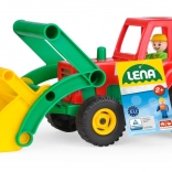 Kolorowy traktor z przednią łyżką marki LENA ucieszy małych budowniczych od 2 lat. Jest w pełni mechaniczny, wykonany z wytrzymałego plastiku i ma otwieraną kabinę z figurką kierowcy dla jeszcze większej frajdy.