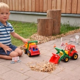 Odkryj solidny dziecięcy traktor z ładowarką, stworzony do zabawy w domu i w ogrodzie. Dzięki mocnej konstrukcji i wysokiej jakości plastikowi świetnie sprawdzi się w piasku, na podwórku i w dziecięcym pokoju. Przednia łyżka jest łatwa w obsłudze i wspiera rozwój małej motoryki oraz wyobraźni.