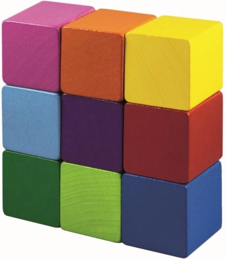 - 9 kolorowych klocków do różnorodnych konstrukcji
