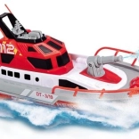 Wypłyń na misję ratunkową z naszą RC ratunkową łodzią. Z częstotliwością 2,4 GHz i trzema kanałami ta łódź oferuje stabilne i płynne działanie. Dzięki prędkości do 3 km/h i pokładowemu wodnemu działku jest idealna na różne wodne przygody. Nie martw się o bezpieczeństwo – łódź jest wyposażona w wodoodporny przełącznik i kabel USB do łatwego i szybkiego ładowania. Z całkowitą długością 38 cm zapewnia doskonałą równowagę pomiędzy kompaktowym rozmiarem a realistycznym wyglądem.