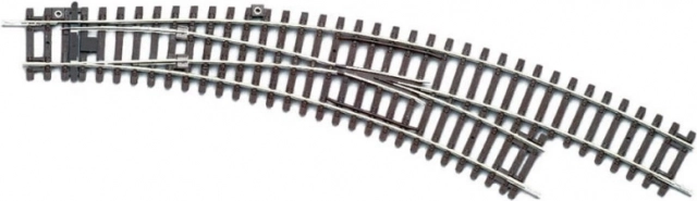 Szczegółowa wymiana kolejowa Piko z odtworzeniem drewnianych podkładów w wiernych kolorach oraz kombinacją dwóch łuków 30° (R4/R3) do skierowania w prawo. Ręczne sterowanie z możliwością podłączenia przestawnika zdalnego sterowania.