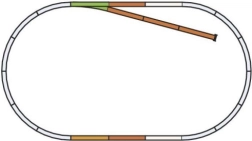 - Prosty tor G239 (1×), prosty tor G231 z gniazdem do zacisku zasilającego (5×), zwrotnica WR prosta prawa G239/R9 (1×), odbojnik torowy (1×)