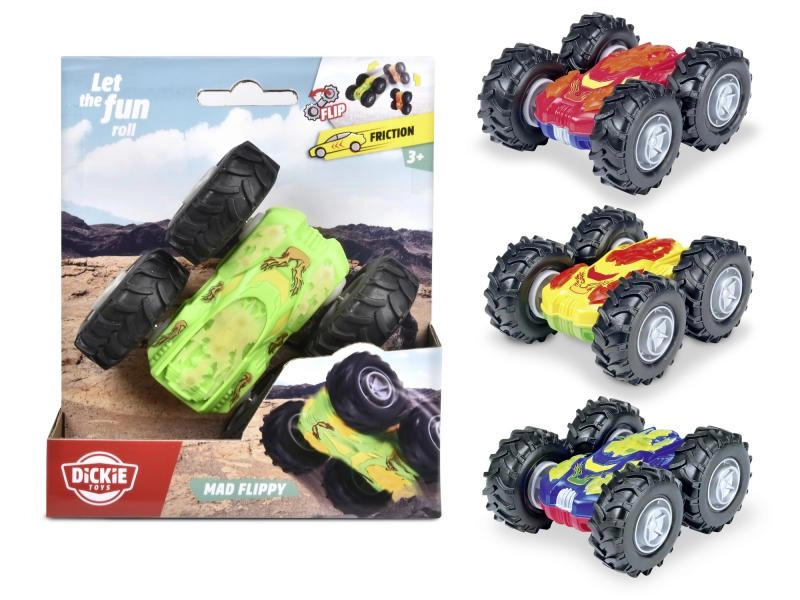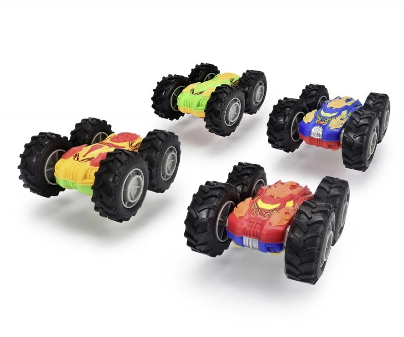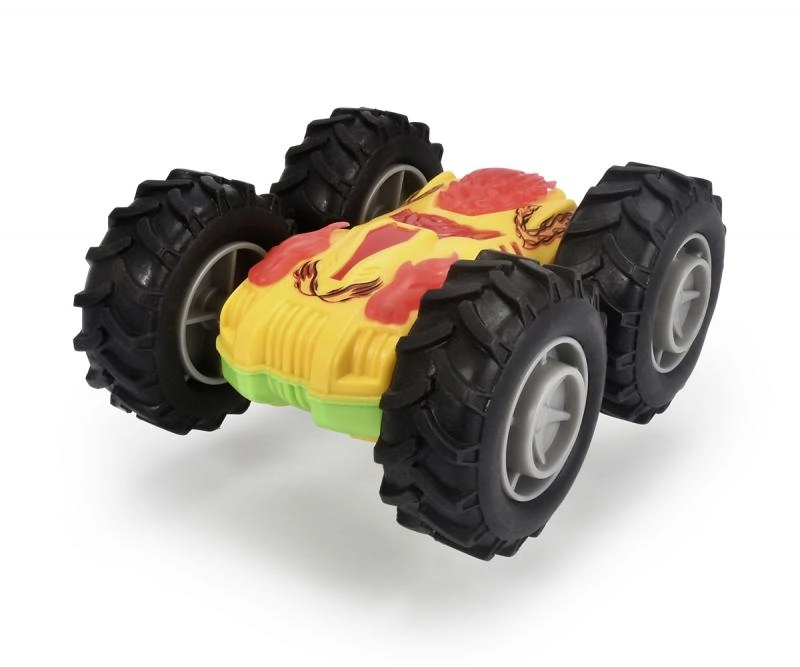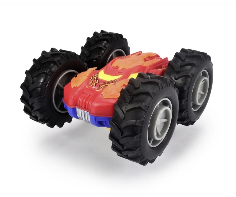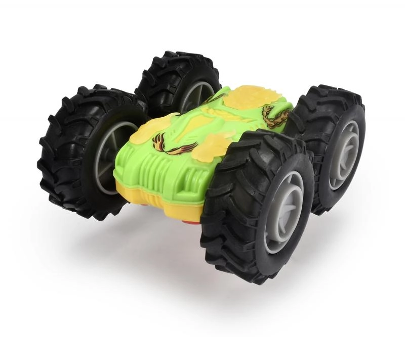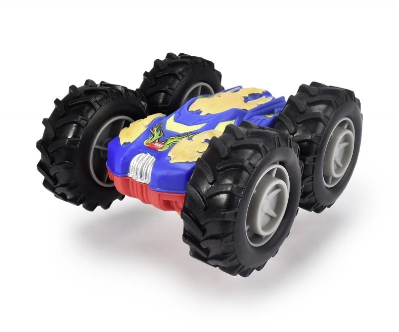 Auto na napęd cierny z dużymi kołami i funkcją przewracania. Długość ok. 10 cm.