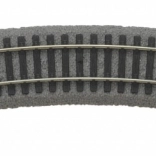 Łukowy tor marki PIKO z szczegółowym odwzorowaniem drewnianych podkładów na żwirowym podłożu. Idealny dla modelarzy szukających wiernego odwzorowania i wysokiej jakości wykonania.