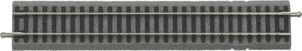 Ta prosta szyna od Piko przedstawia szczegółowe odwzorowanie drewnianych podkładów leżących na szutrowym podłożu w realistycznych kolorach. Wyjątkowe właściwości tego produktu obejmują wycięcie pod zacisk zasilający, który można uzupełnić odpowiednim podłożem, co umożliwia kompatybilność zarówno z modelarstwo analogowym, jak i cyfrowym.