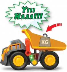 Dzieci mogą korzystać z różnych funkcji pojazdu, które obejmują ruchomą wywrotkę i reakcję obciążeniową ze światłami dla interaktywnej zabawy.