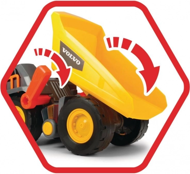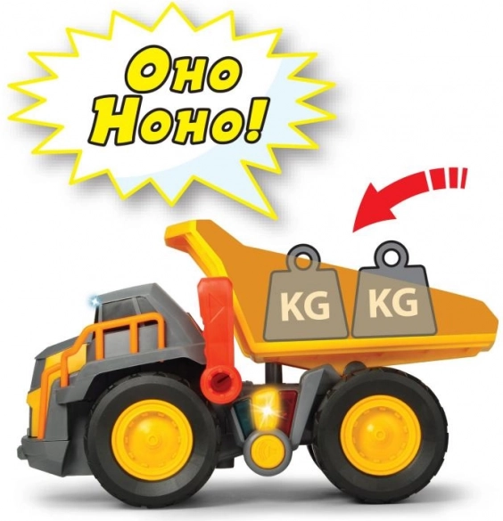 Ten Volvo zabawkowy wywrotka zapewnia nieograniczoną zabawę w udawanie gry. Posiada napęd bez silnika i reaguje na trzy różne poziomy obciążenia za pomocą kolorowych świateł i sygnałów dźwiękowych.