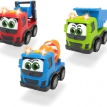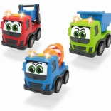 Wesoła robocza ciężarówka dla maluchów na wolnym biegu ucieszy dzieci kolorami i interaktywnością. Oferuje efekty świetlne i dźwiękowe, trzy warianty nadwozia (wywrotka, betoniarka, samochód ciężarowy) oraz kompaktową długość 13 cm dla łatwego chwytania. Wytrzymałe plastikowe wykonanie i wolny bieg wspierają bezpieczną i kreatywną zabawę.