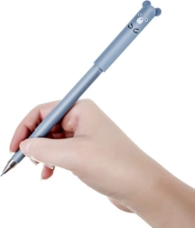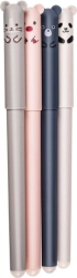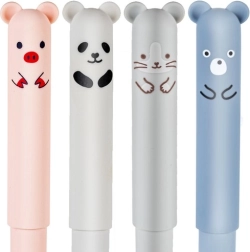 Zestaw zawiera 4 stylowe wymazywalne długopisy w kolorach szarym, białym, różowym i niebieskim z wesołymi motywami zwierzątek (prosiaczek, panda, myszka, miś). Dzięki termoczułemu tuszowi łatwo poprawisz drobne błędy – wystarczy użyć gumki na końcu długopisu i pisać dalej, bez nieestetycznych skreśleń.