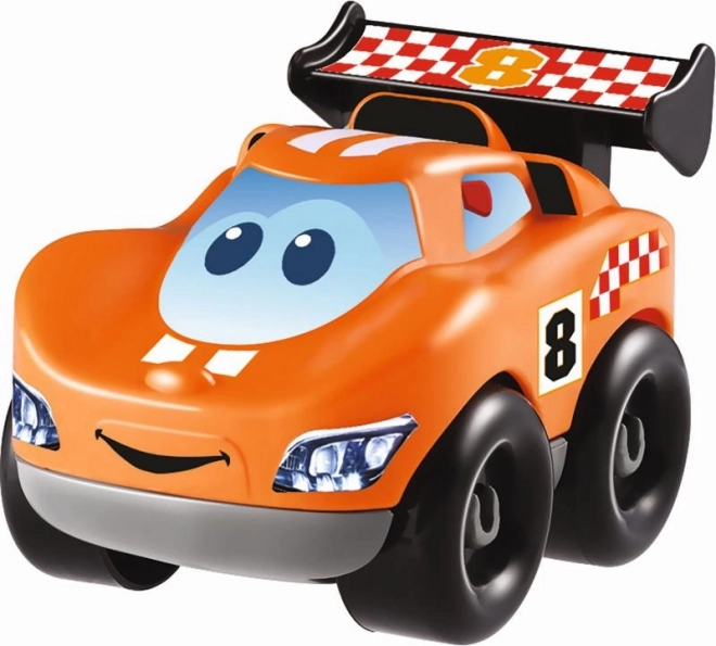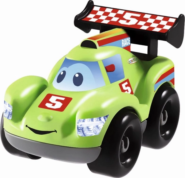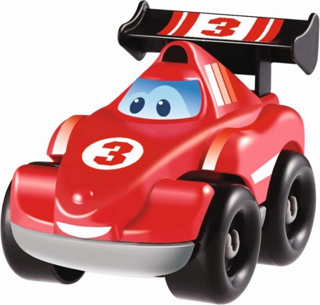 Trzy modele samochodów wyścigowych z wymienną karoserią. Każdy model samochodu wyścigowego ze śmieszną buzią jest pozbawiony ostrych krawędzi i łatwo się go trzyma. Idealny dla małych dziecięcych rączek. Wymiary produktu (D×S×W): 10 × 6,5 × 6,5 cm.