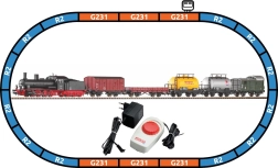 - Kompletny zestaw – lokomotywa, 5 wagonów towarowych, tory, zasilanie i kontroler.