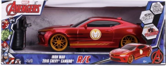Stylowy samochód zdalnie sterowany inspirowany bohaterem IRON MAN zapewnia zabawę od razu po wyjęciu z pudełka – w zestawie znajdują się wszystkie baterie, a ładowanie odbywa się przez USB. Model Chevrolet Camaro 2016 w skali 1:16 osiąga prędkość do 9 km/h, działa na 2,4 GHz z 2‑kanałowym sterowaniem i posiada Turbo dla szybkiego przyspieszenia.