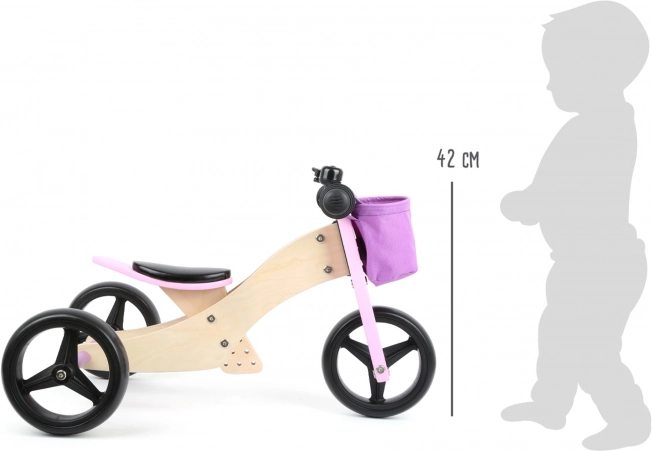 Drewniany jeździk 2w1 różowy small foot towarzyszy małym kierowcom od pierwszych kroków aż po pewną jazdę. Zacznij jako trójkołowiec dla maksymalnej stabilności i treningu równowagi, a następnie prostą przebudową kontynuuj jako rowerek biegowy. Lekka i solidna konstrukcja zapewnia łatwą obsługę oraz długą żywotność.