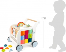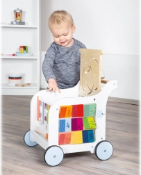 Drewniany chodzik Elephant od Small Foot oferuje dzieciom szeroką gamę zabawek do rozwijania umiejętności. Wielozadaniowy design obejmuje: