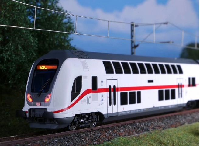 Szczegółowo opracowany piętrowy wagon sterowniczy IC2 2. klasy w skali H0 z malowaniem i nadrukami DB AG. Oferuje białe/czerwone oświetlenie LED z przełączaniem kierunkowym, jest przygotowany do montażu dekodera sterującego i idealnie nadaje się do spójnych składów IC2 z lokomotywami BR 146.5 lub 147.5.
