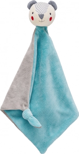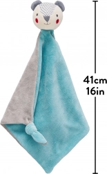 Ekstra miękki, pluszowy kocyk z główką uśmiechniętego misia. Idealny dodatek na popołudniowy odpoczynek. Kontrastowe wzory i kolory misia stymulują rozwój sensoryczny u dzieci, a supełek w rogu kocyka można trzymać lub gryźć.
