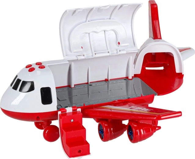 Wyrusz do akcji z powietrza – solidny samolot strażacki przetransportuje cały zespół i sprzęt prosto na miejsce działań. Tylna składana rampa ułatwia wjazd pojazdów, boczne otwieranie i uchylne schodki usprawniają manipulację i zabawę. Dzięki zdejmowanym skrzydłom samolot łatwo przechowywać.