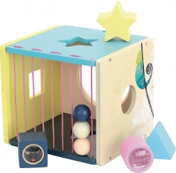 Dzieci mogą wkładać różne kształty do odpowiadających im otworów, co rozwija ich małą motorykę i orientację przestrzenną.