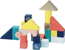 Zawiera 24 klocki o różnych kształtach i kolorach, które wspierają kreatywność oraz myślenie przestrzenne.