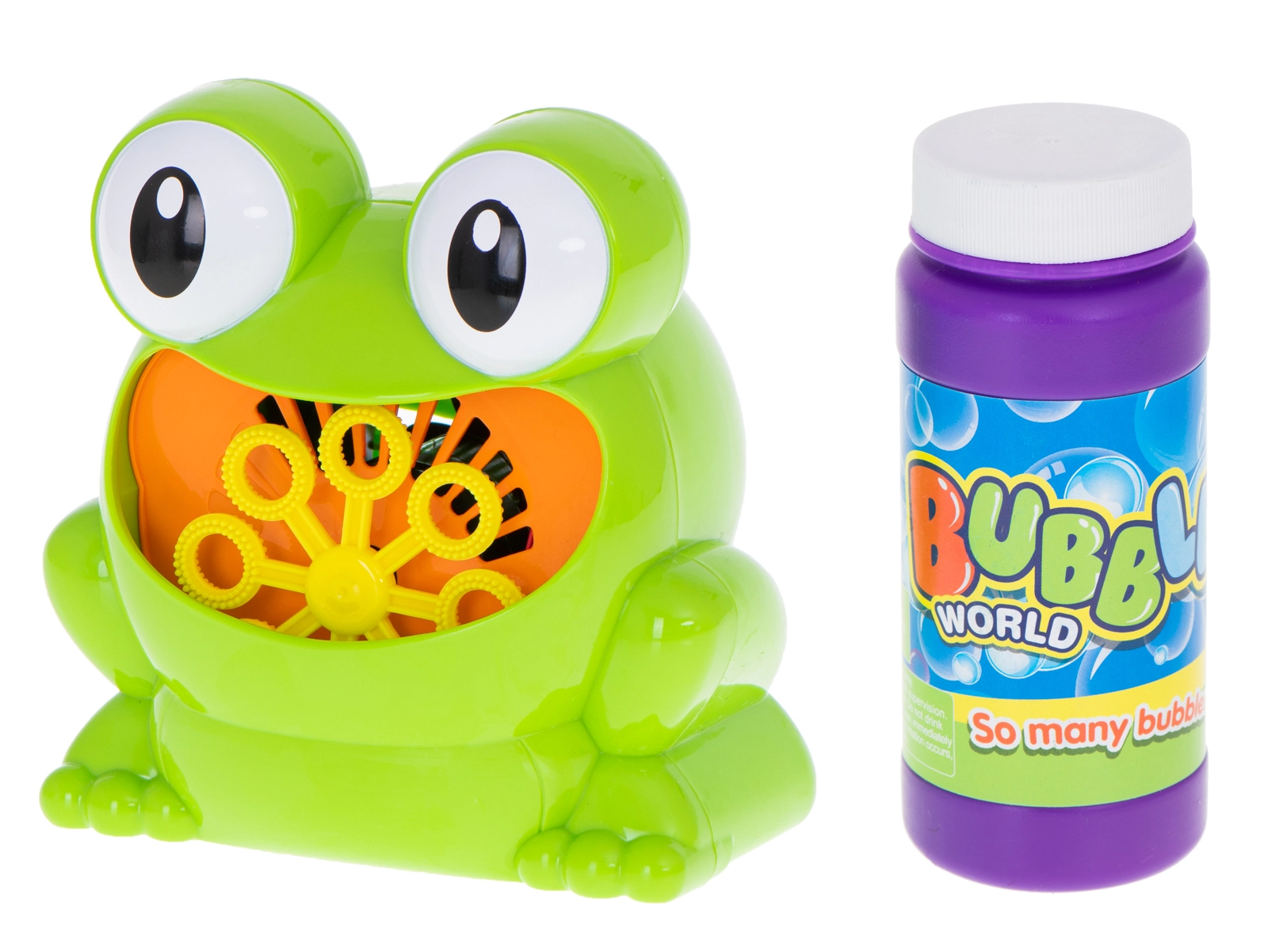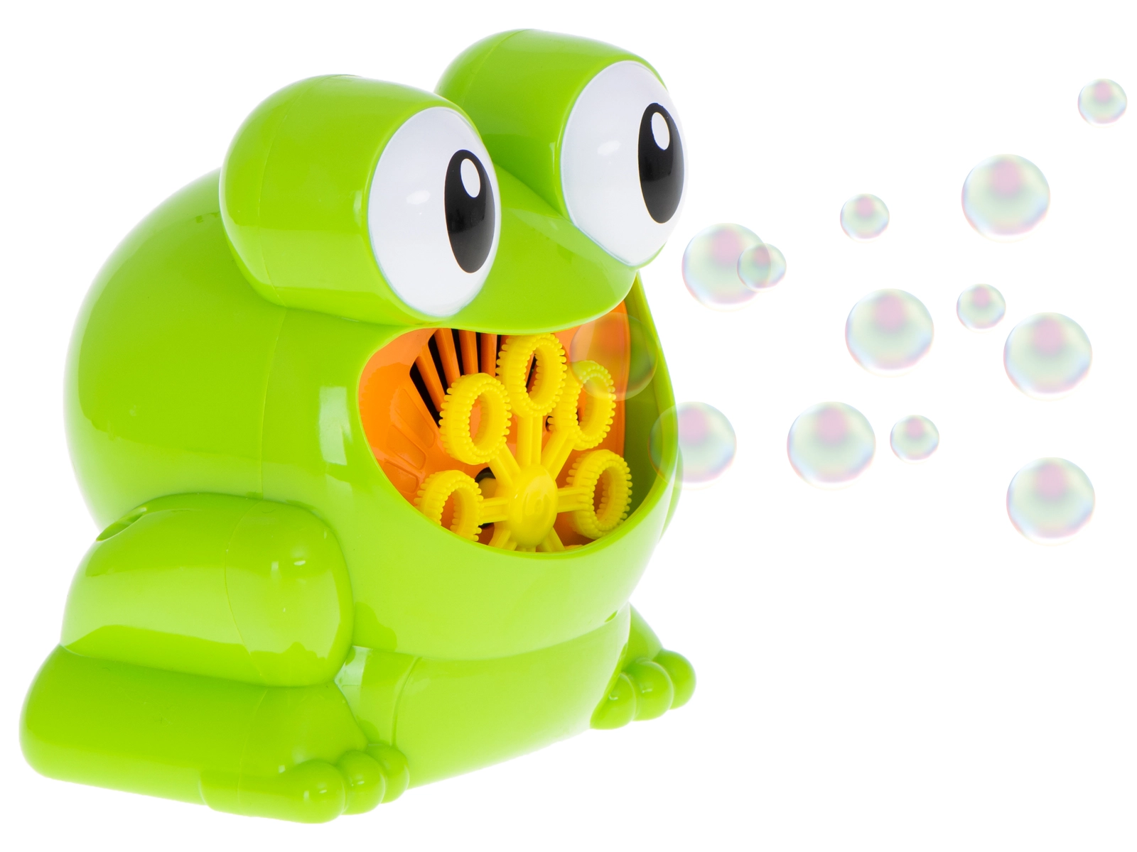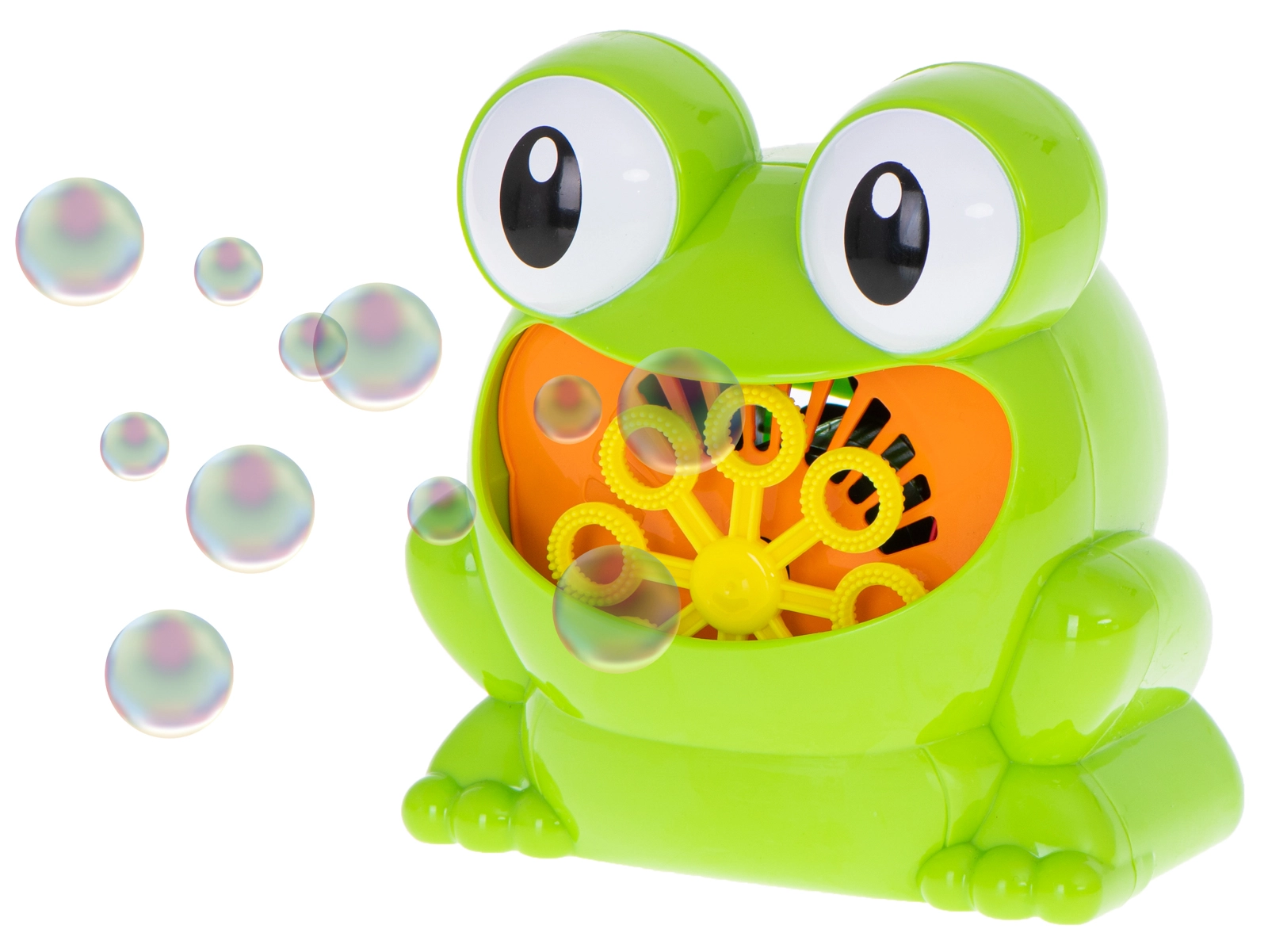 Po wlaniu płynu i naciśnięciu przycisku żabka od razu uruchamia strumień kolorowych banieczek – idealne do codziennej zabawy i na imprezy.