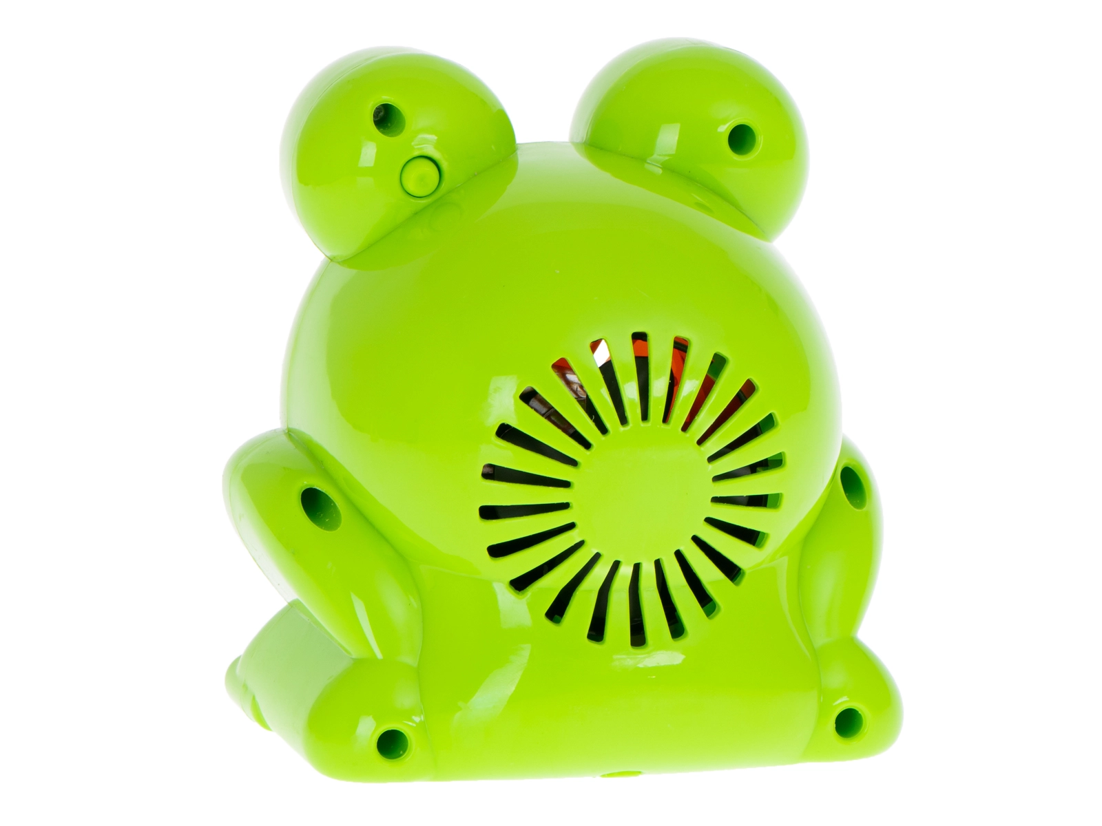 Ten zielony automat w kształcie żabki ucieszy małych i dużych miłośników baniek. Wystarczy wlać dołączony płyn do otworu, nacisnąć przycisk, a obracające się kółko z wentylatorkiem zacznie wypuszczać magiczne tęczowe bańki. Urządzenie jest lekkie, stabilne i gotowe do natychmiastowego użytku.