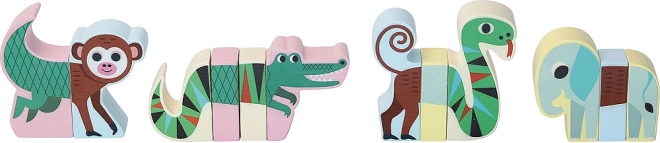 Ten magnetyczny zestaw puzzli pozwala dzieciom tworzyć i odkrywać nowe kombinacje z użyciem czterech zwierząt z dżungli.