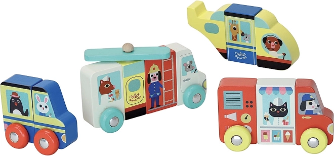 Te wysokiej jakości drewniane magnetyczne puzzle oferują dzieciom nieskończone możliwości układania. Dzięki magnetycznym elementom pojazdy można łatwo łączyć i ponownie rozdzielać, a nawet zabawnie mieszać części między sobą. Wesołe kolory i retro ilustracje autorstwa artystki Ingeli P. Arrhenius zamieniają każdą zabawę w angażujące doświadczenie wizualne.