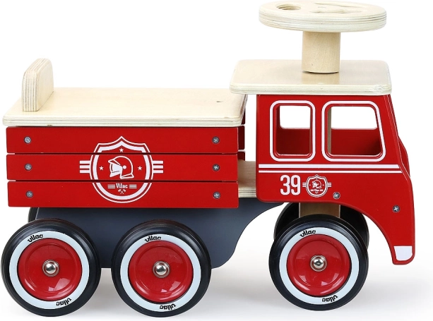 Wnieś do domu radość w postaci drewnianego jeździka w kształcie wozu strażackiego marki Vilac. Dzięki gumowanym kółkom porusza się cicho, dlatego nadaje się do każdego wnętrza. Dzieci mogą wykorzystać schowek pod siedziskiem do przechowywania ulubionych pluszaków lub drobiazgów. Jeździk został wykonany z myślą o środowisku, co daje spokój również rodzicom.