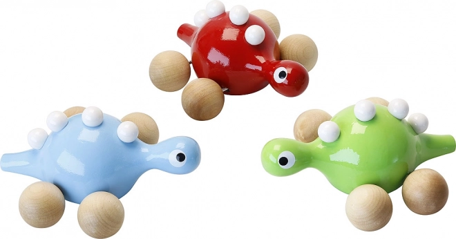 Drewniany dinozaur na kółkach Niebieski